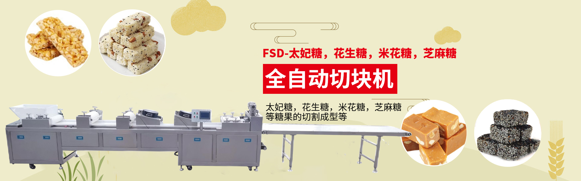 引入國(guó)外 技術(shù),產(chǎn)品遠(yuǎn)銷(xiāo)全國(guó)各地及出口 各個(gè)我們公司已經(jīng)成立三十多年了。本公司專(zhuān)業(yè)生產(chǎn)沙琪瑪生產(chǎn)線(xiàn)、牛軋奶芙/雪花酥生產(chǎn)線(xiàn)、堅(jiān)果酥/果仁酥生產(chǎn)線(xiàn)、米麥通生產(chǎn)線(xiàn)、食品成型機(jī)等各類(lèi)休閑食品機(jī)械,并提供專(zhuān)業(yè)的食品機(jī)械定制、生產(chǎn)工藝咨詢(xún)服務(wù)。